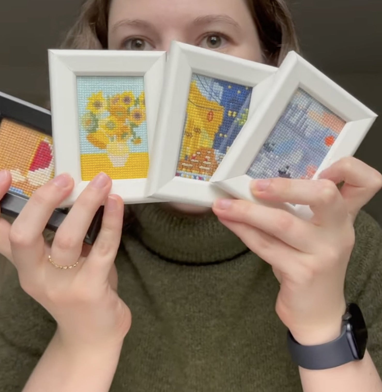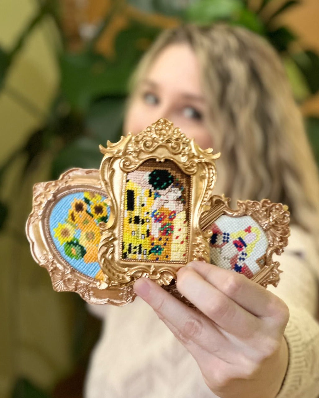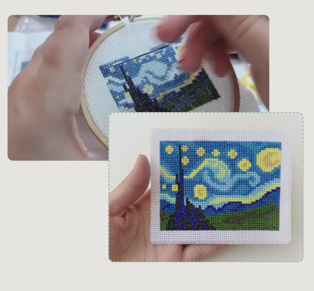 Mini Masterpieces are tiny stitched versions of iconic artworks — easy to start, quick to finish, and perfect for beginners.